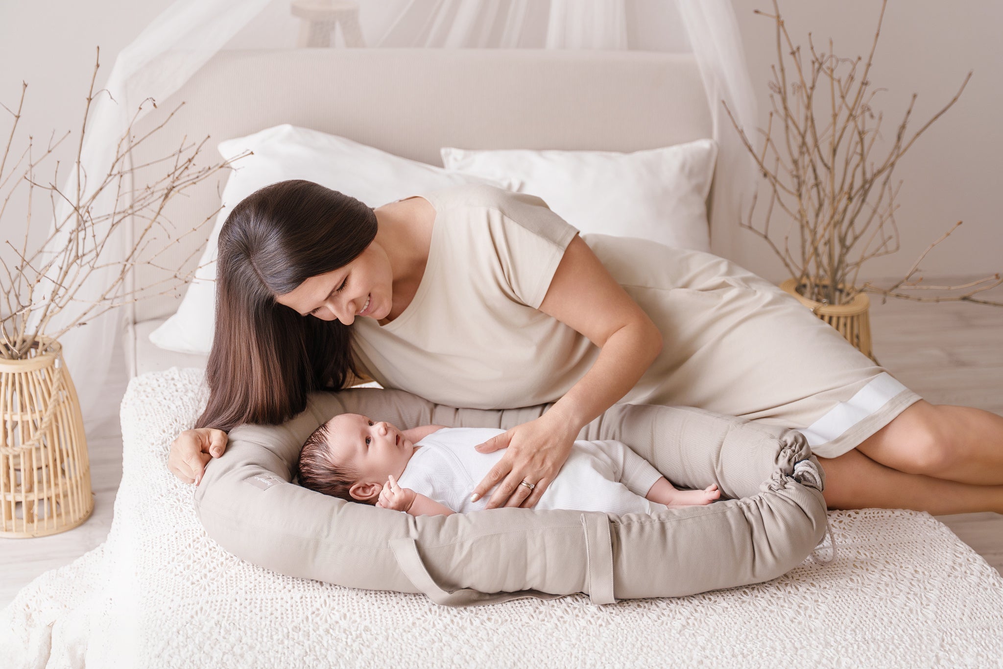 homba® zen mini závesné kreslo bavlnené béžové (2-10 rokov)